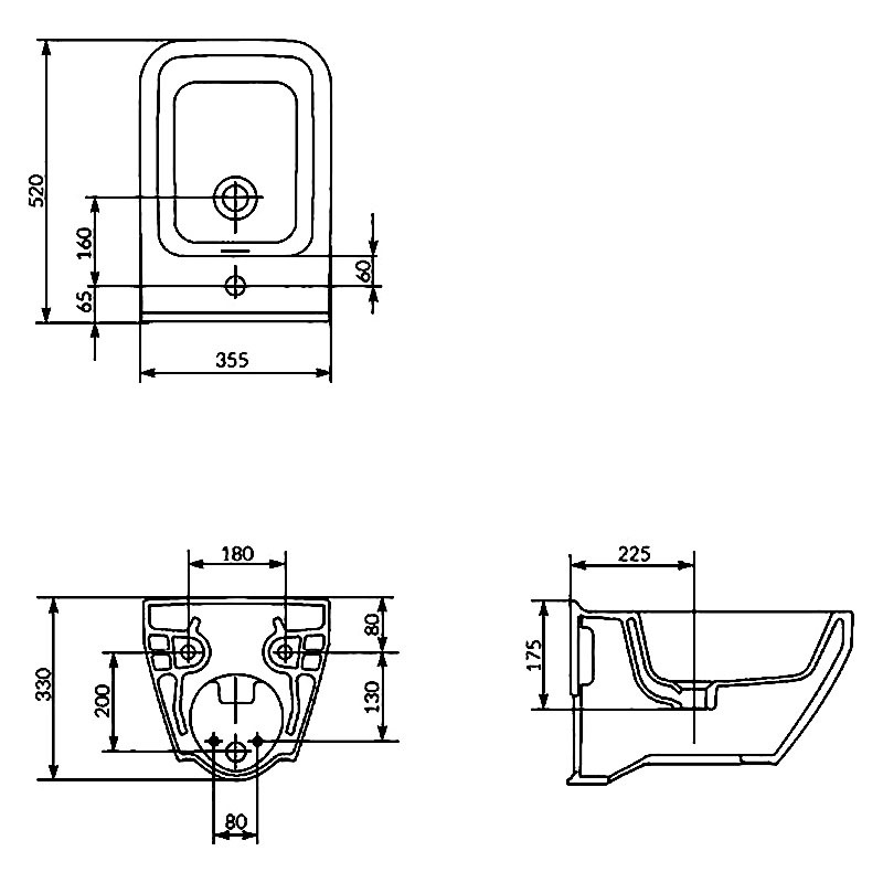 - 1-о центральний отвір під змішувач і 1-о отвір під перелив