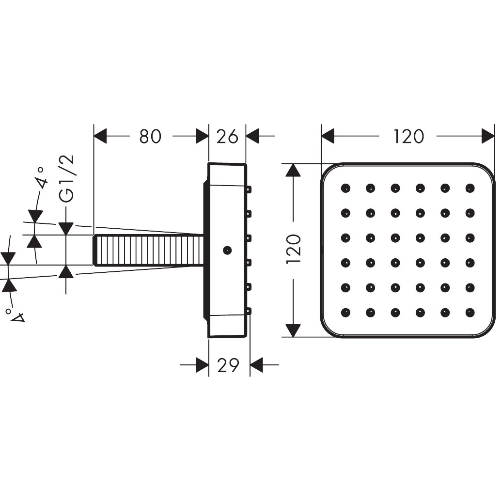 - Розмір 120 х 120 мм, 1 тип струменя: звичайний, 5 рівнів регулювання кута струменя