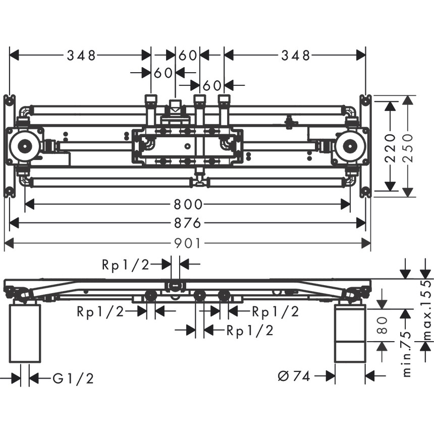 Прихована частина верхнього душу Hansgrohe Axor ShowerHeaven 1200/300 4jet