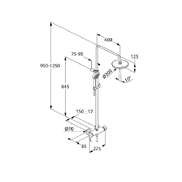 - висота штанги 950-1250 мм, регулювання кронштейна вгору-вниз і вліво-вправо