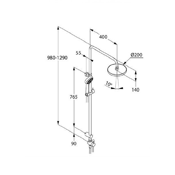 - висота штанги 980-1290 мм, регулювання кронштейна вгору-вниз і вліво-вправо, перемикач на 2 положення душова лійка/верхній душ