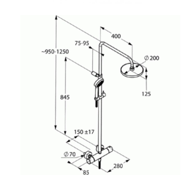 - висота штанги 950-1250 мм, регулювання кронштейна вгору-вниз і вліво-вправо