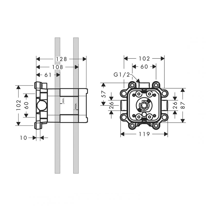 - Використовується для монтажу з верхнім душем 40871000, 40872000, 40873000, 40874000