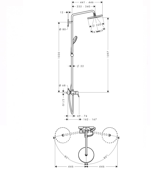 Душова система Hansgrohe Croma 220 Showerpipe Hansgrohe Croma 220 Showerpipe