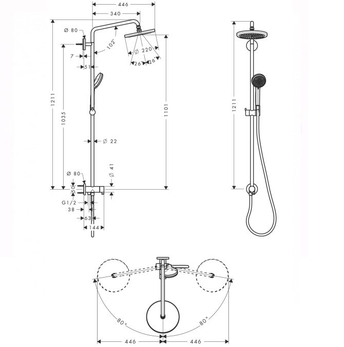 Душова система Hansgrohe Croma 220 Showerpipe Hansgrohe Croma 220 Showerpipe