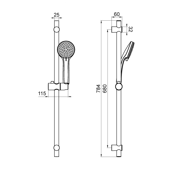 Комплектація: настінна штанга, ручний душ, душовий шланг.