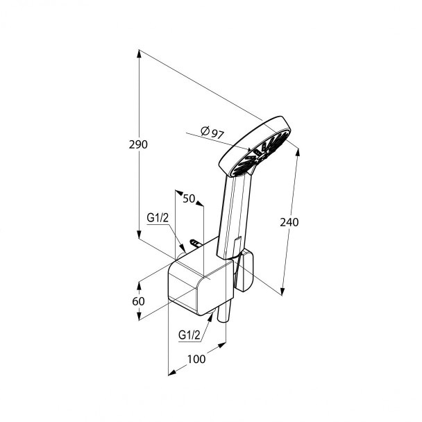 - душова лійка KLUDI A-QA 1S DN 15, 60 отворів на душовій поверхні (дощовий струмінь), з функцією Eco - економія води 50%, із захистом від зворотного потоку