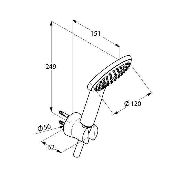 - ручний душ Ø 120 мм, довжина 249 мм, 1-но режимний: дощовий струмінь