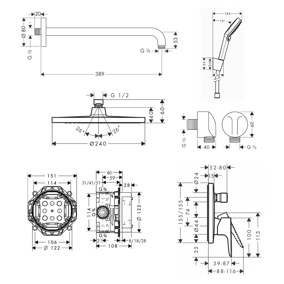 Душова система Hansgrohe Talis E 71745000+01800180+26694400+27413000+26723000+27454000