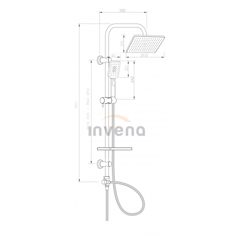 - душова штанга з нержавіючої сталі, висота 960 мм