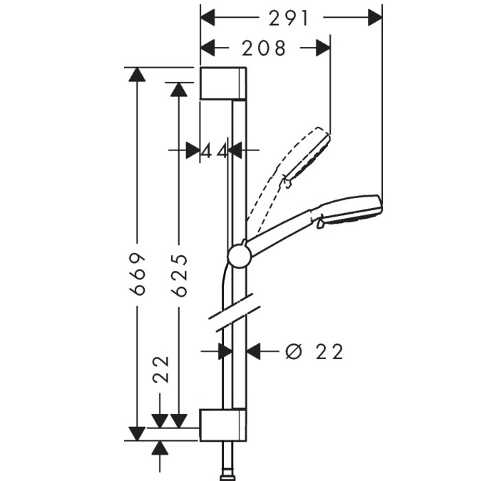 - Штанга для душу Unica`Croma 650 мм(26503000), без поворотного шарніра, безступінчасте регулювання за висотою
