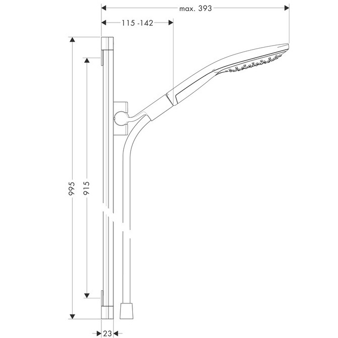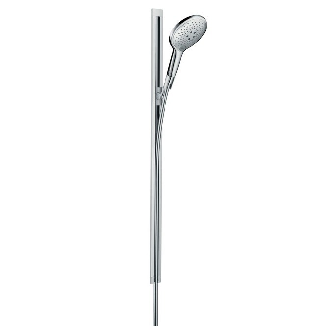 - Ручний душ Raindance Select S 150 (арт. 28587000), розмір душового диска 150 мм, 3 струмені (Rain, CaresseAir, струмінь Mix), перемикання типів струменя за допомогою кнопки Select, максимальна витрата води (за 3 бар) 16 л/хв.