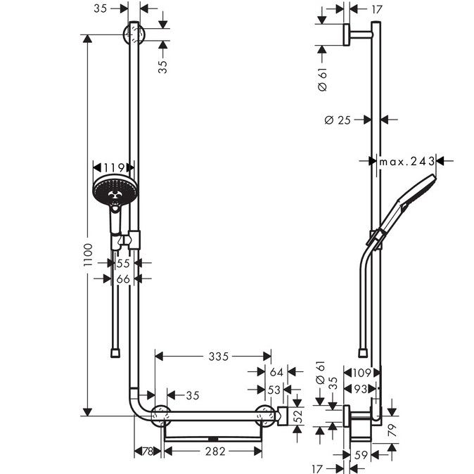- Лівостороння штанга для душу Unica Comfort 1100 мм (арт. 26403400), ширина 25 мм, латунна