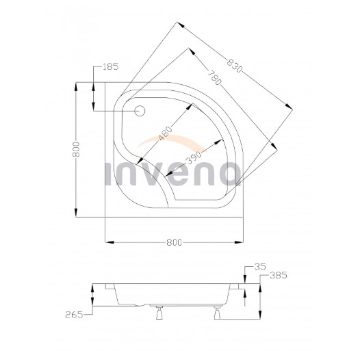 Душовий піддон Invena AK-80-G80-O, має симетричну форму і за своїми габаритами замінить маленьку ванну. Також, на піддон можна поставити душові двері або душову кабіну і трансформувати його у великий гідробокс. Сумісний з душовою кабіною Marbella Deep cabin.