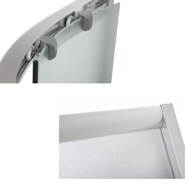 - розсувна конструкція дверей, тихе закривання завдяки магнітному ущільнювачу, подвійні верхні ролики, верхні ролики знімаються, дверні ручки: рейлінг хром