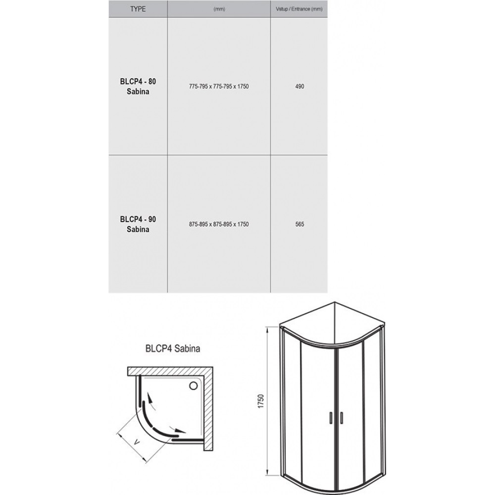 Душовий куточок напівкруглої форми Ravak Blix BLCP4 Sabina - чотирьохелементний, розсувний. Складається з двох нерухомих і двох рухомих частин, що утворюють розсувні двері.Легким натисканням на механізм у нижній частині розсувних дверей стулки можна відхилити або повністю вийняти.