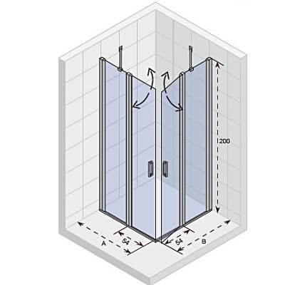 - конструкція: чотирьохелементна, кутове встановлення, 2 розпашні двері