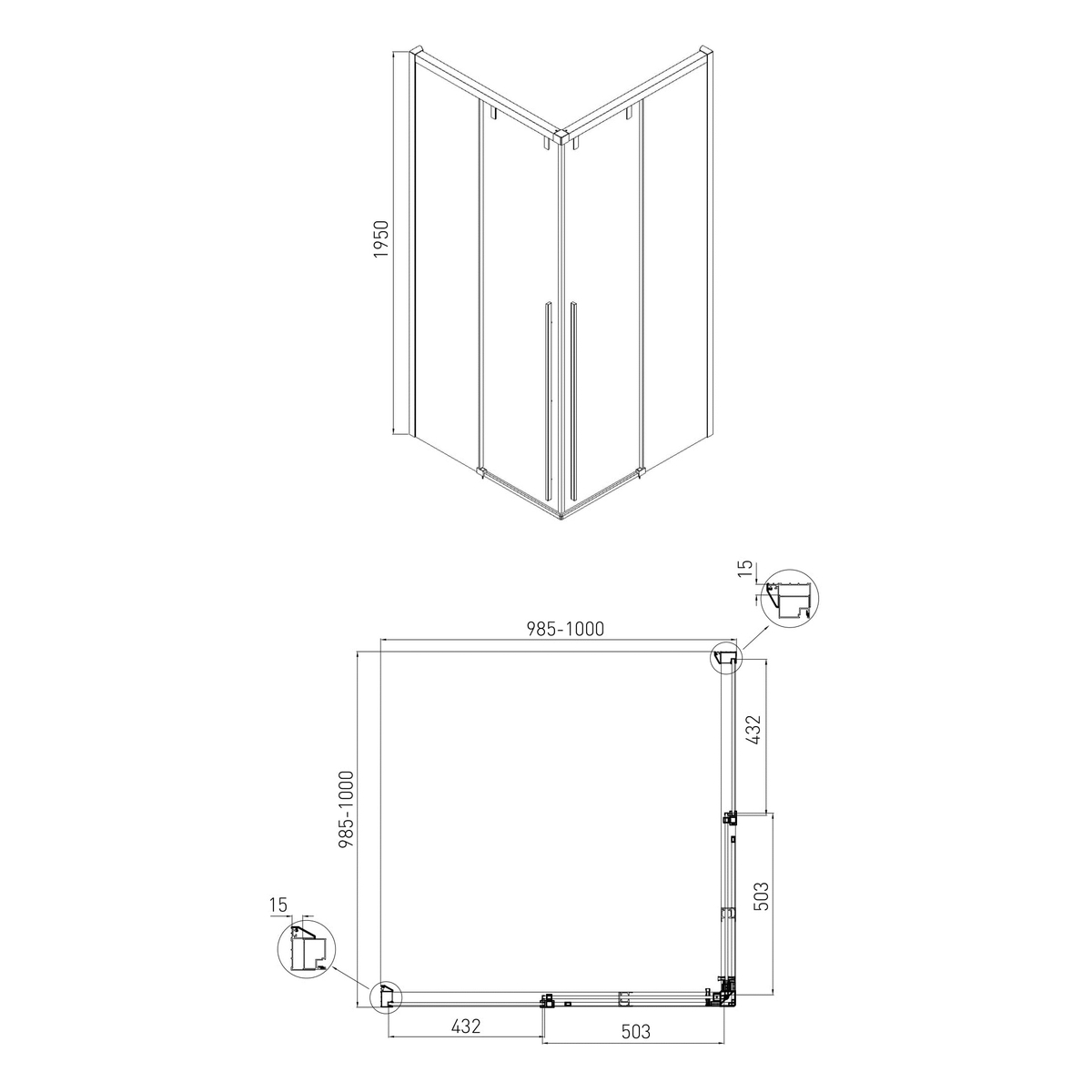 - 1000 x 1000 x 1950 мм, двері розсувні