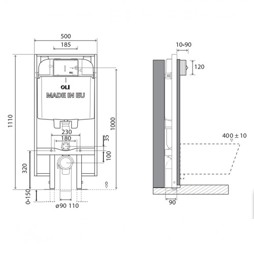 Інсталяція OLI 74 Plus,сумісна з усіма видами підвісних унітазів.