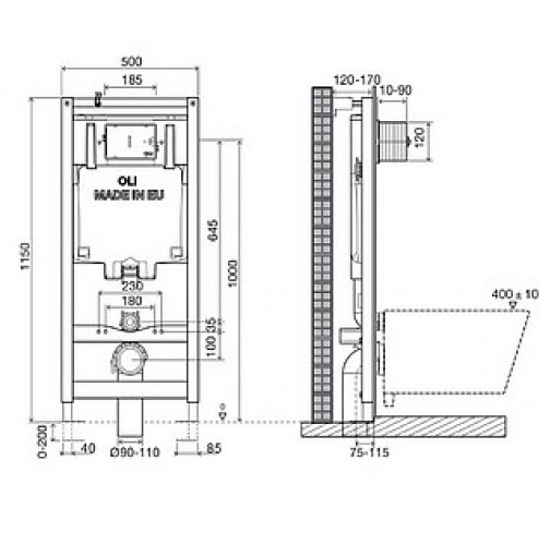 Інсталяція OLI 80,сумісна з усіма видами підвісних унітазів.