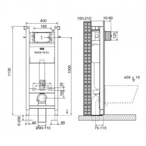 Інсталяція OLI Expert Evo 1130, сумісна з усіма підвісними унітазами.