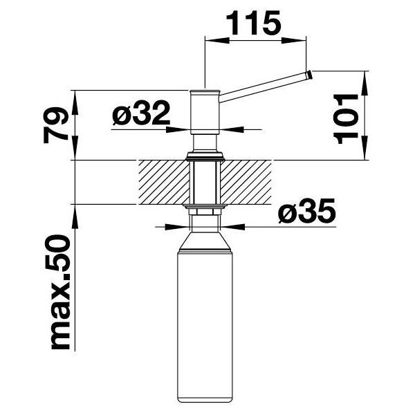 - отвір Ø 35 мм, об'єм 250 мл, винос носика 115 мм