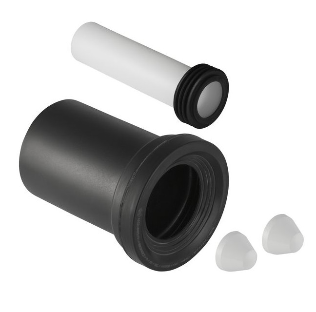 - комплектація: заглушки для болтів-тримачів унітазу, зливна труба діаметр 90 мм, сполучна манжета, сполучна трубка діаметр 45 мм