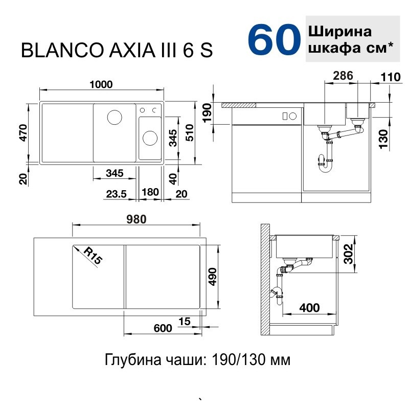 Кухонна мийка Blanco Axia III 6 S, чаша праворуч