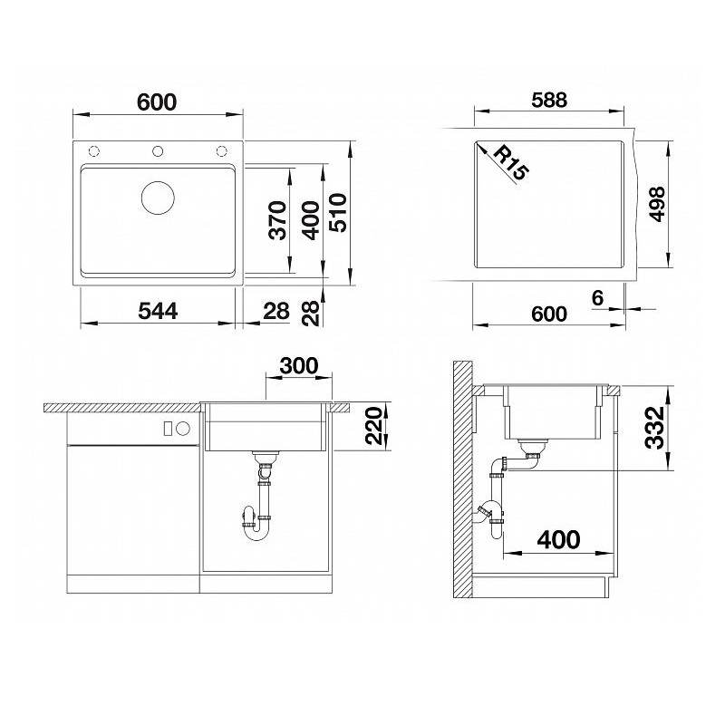 - загальний розмір: 60 х 51 х 22 см, розміри чаші: 54.4 х 37 х 22 см
