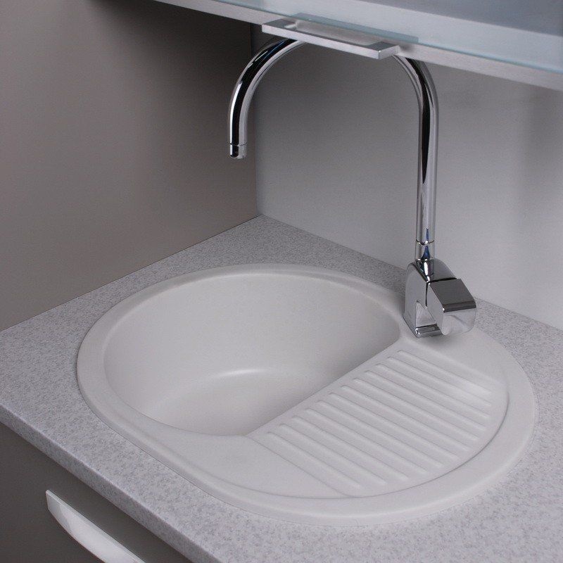 Композитний матеріал складається з поліефірної смоли та мінералів (кварц пісок, подрібнений мармур). Завдяки наповнювачам матеріал міцний, а завдяки смолі добре тримає форму. Масове співвідношення мінералів до смоли становить 70:30 +/- 5%. Для виробництва використовуються смоли, розроблені спеціально для виробництва санітарної продукції з низьким вмістом стиролу, стійкістю до впливу ультрафіолету. Цикл нашого виробництва передбачає постобробку виробленої продукції, яка дає змогу знизити в рази негативний вплив хімічних компонентів. Мийки прекрасно підходять для домашнього використання: нарізайте на ній овочі та фрукти, мийте в ній посуд, використовуйте так, як заманеться. Вона прекрасно впорається з поставленим завданням!