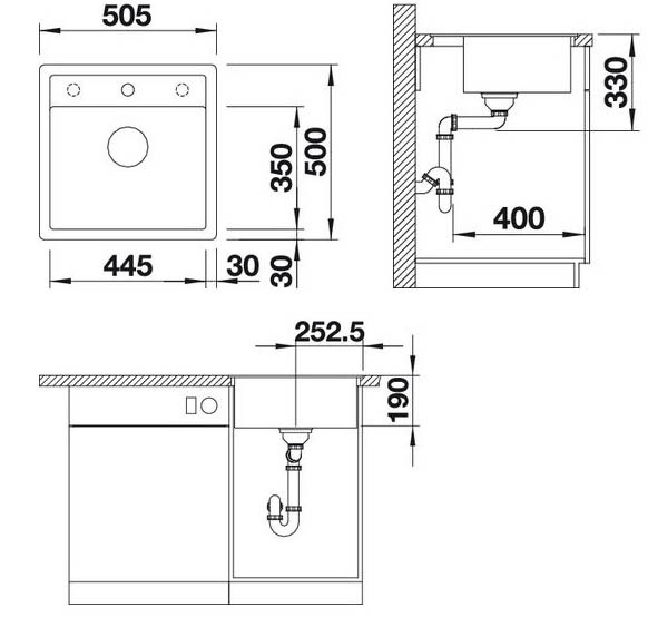 - загальний розмір: 50.5 х 50 х 19 см, розміри чаші: 44.5 х 35 х 19 см