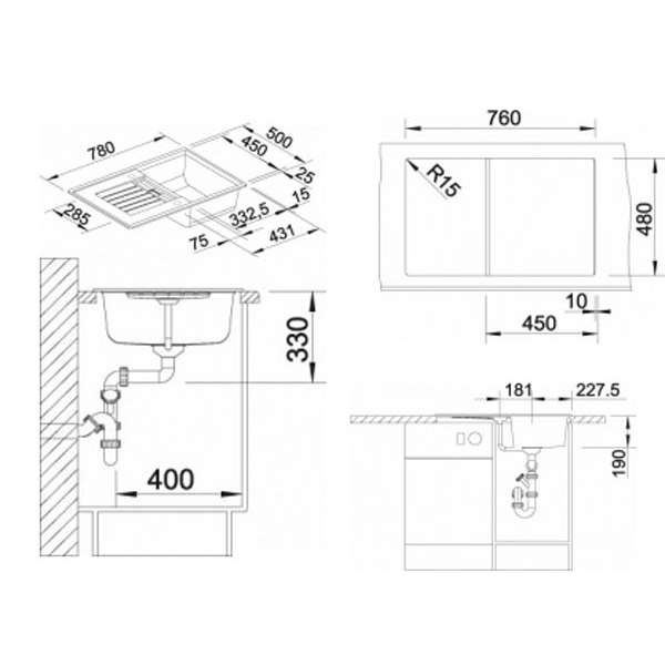 - загальний розмір: 78 х 50 х 19 см, розміри чаші: 33.5 х 45 х 19 см