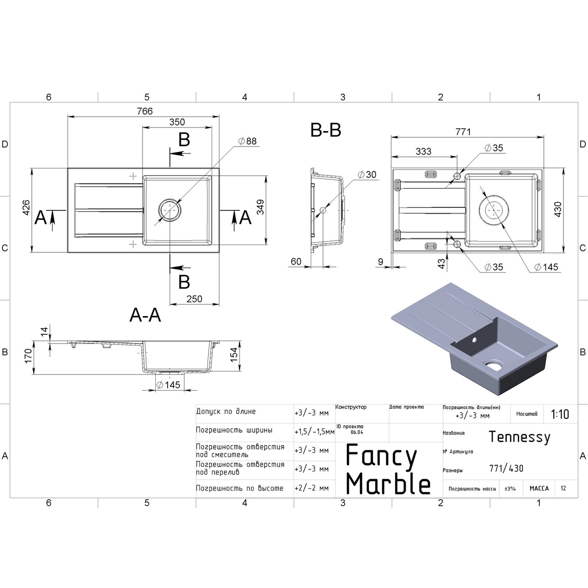 Композитний матеріал складається з поліефірної смоли та мінералів (кварц пісок, подрібнений мармур). Завдяки наповнювачам матеріал міцний, а завдяки смолі добре тримає форму. Масове співвідношення мінералів до смоли становить 70:30 +/- 5%. Для виробництва використовуються смоли, розроблені спеціально для виробництва санітарної продукції з низьким вмістом стиролу, стійкістю до впливу ультрафіолету. Цикл нашого виробництва передбачає постобробку виробленої продукції, яка дає змогу знизити в рази негативний вплив хімічних компонентів. Мийки прекрасно підходять для домашнього використання: нарізайте на ній овочі та фрукти, мийте в ній посуд, використовуйте так, як заманеться. Вона прекрасно впорається з поставленим завданням!