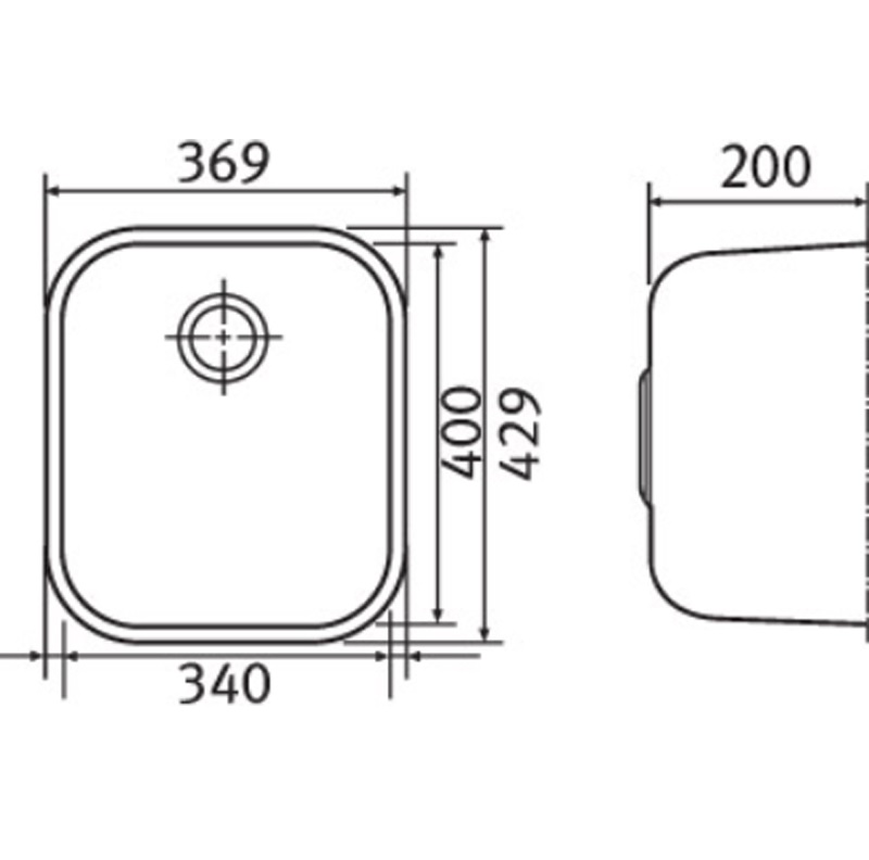 - розмір: 369 х 429 х 200 мм, розмір чаші: 340 х 400 х 200 мм