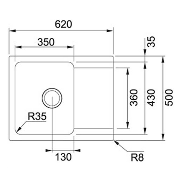 - 620 x 500 х 180 мм, розмір чаші: 350 х 430 х 180 мм