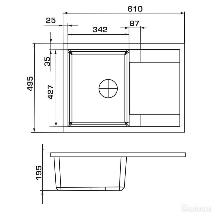 - загальний розмір 610 х 488 мм, чаша 335 х 465 мм, глибина 190 мм, ширина крила 255 мм