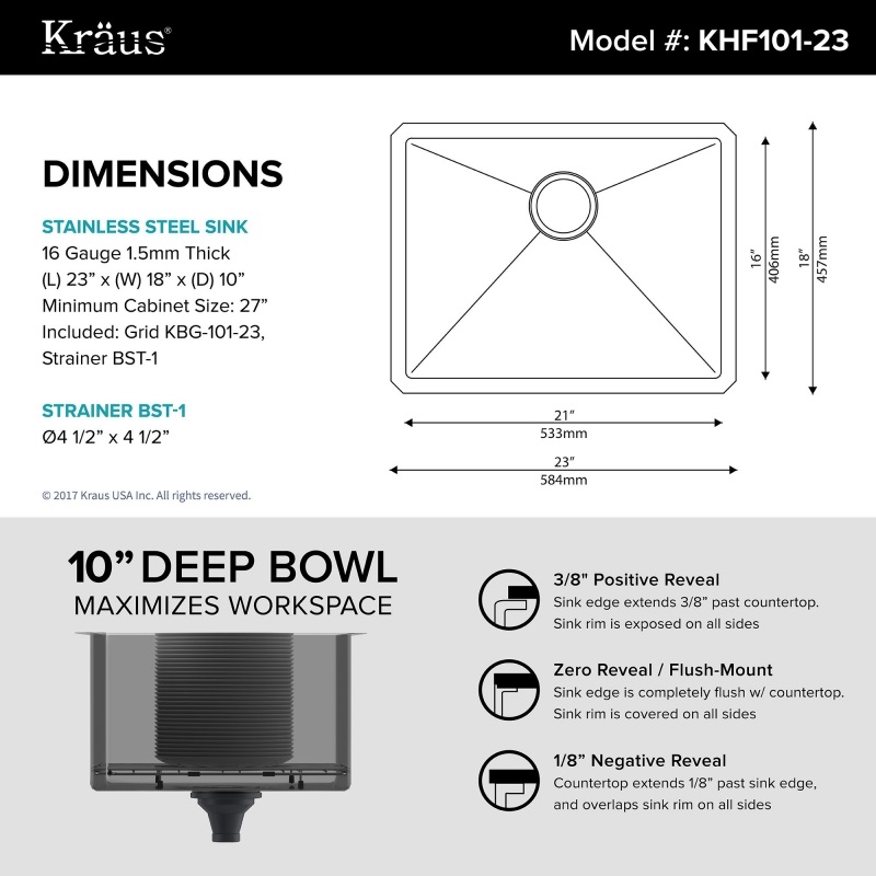 Кухонна мийка Kraus серії Precision з неіржавкої сталі - це поєднання стилю і функціональності на сучасній кухні. Мийка ручної роботи виготовлена з високоякісної неіржавкої сталі T-304 завтовшки 1.5 мм, що забезпечує максимальну міцність і довговічність. Екстра-глибокі чаші (254 мм) легко вміщують велике кухонне приладдя. Кути з обмеженим радіусом і чисті лінії дизайну чудово вписуються в сучасні кухні. Оснащена звукоізоляцією вищого рівня, яка включає товсті гумові амортизаційні подушечки та додаткове захисне покриття Stone Guard, що захищає мийку від конденсату та гасить звук. Антикорозійна поверхня захищена від іржі та окислення ретельним процесом оздоблення. Атласне оздоблення і закруглені кути комерційної якості роблять технічне обслуговування таким же простим, як протирання поверхні вологою тканиною.