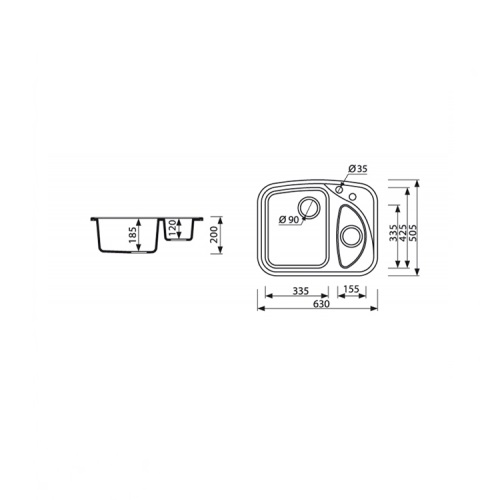 - розмір чаш: 335 x 425 x 185 мм / 155 х 335 х 120 мм