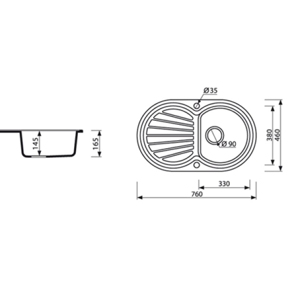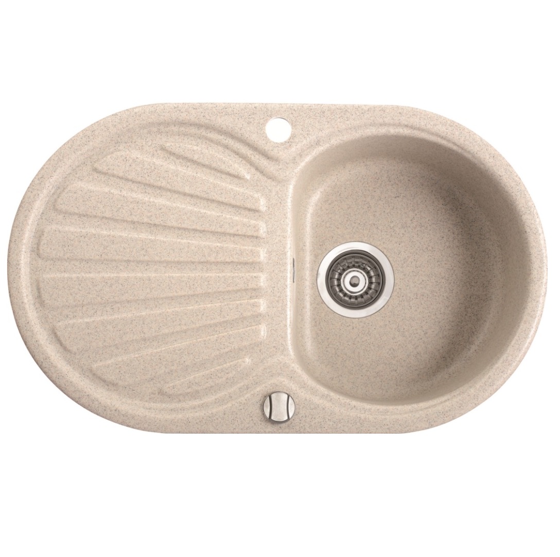 Врізна мийка з однією чашею. У комплект також входить зливна арматура, каналізаційний сифон і автоматичний клапан.