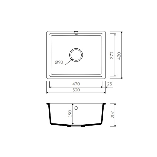Врізна мийка з однією чашею. У комплект також входить зливна арматура, каналізаційний сифон і автоматичний клапан.Можливе встановлення подрібнювача відходів.