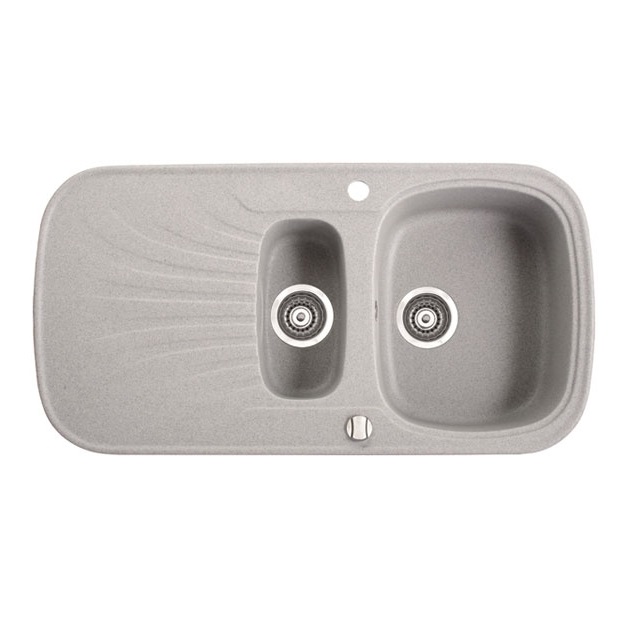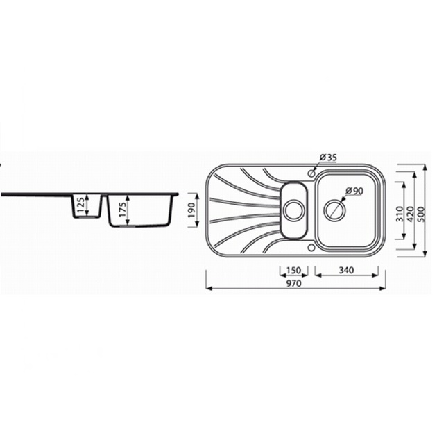 Врізна мийка з однією чашею. У комплект також входить зливна арматура, каналізаційний сифон і автоматичний клапан.