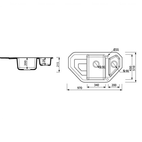 - розмір чаш: 340х430х200 мм, 200х360х120 мм