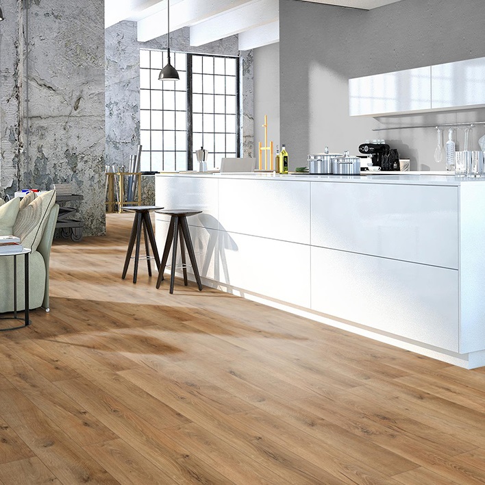- чотиристороння фаска кожної плити забезпечує схожість із натуральним паркетом і підкреслює стиль покриття, роблячи його ідентичним натуральному дереву