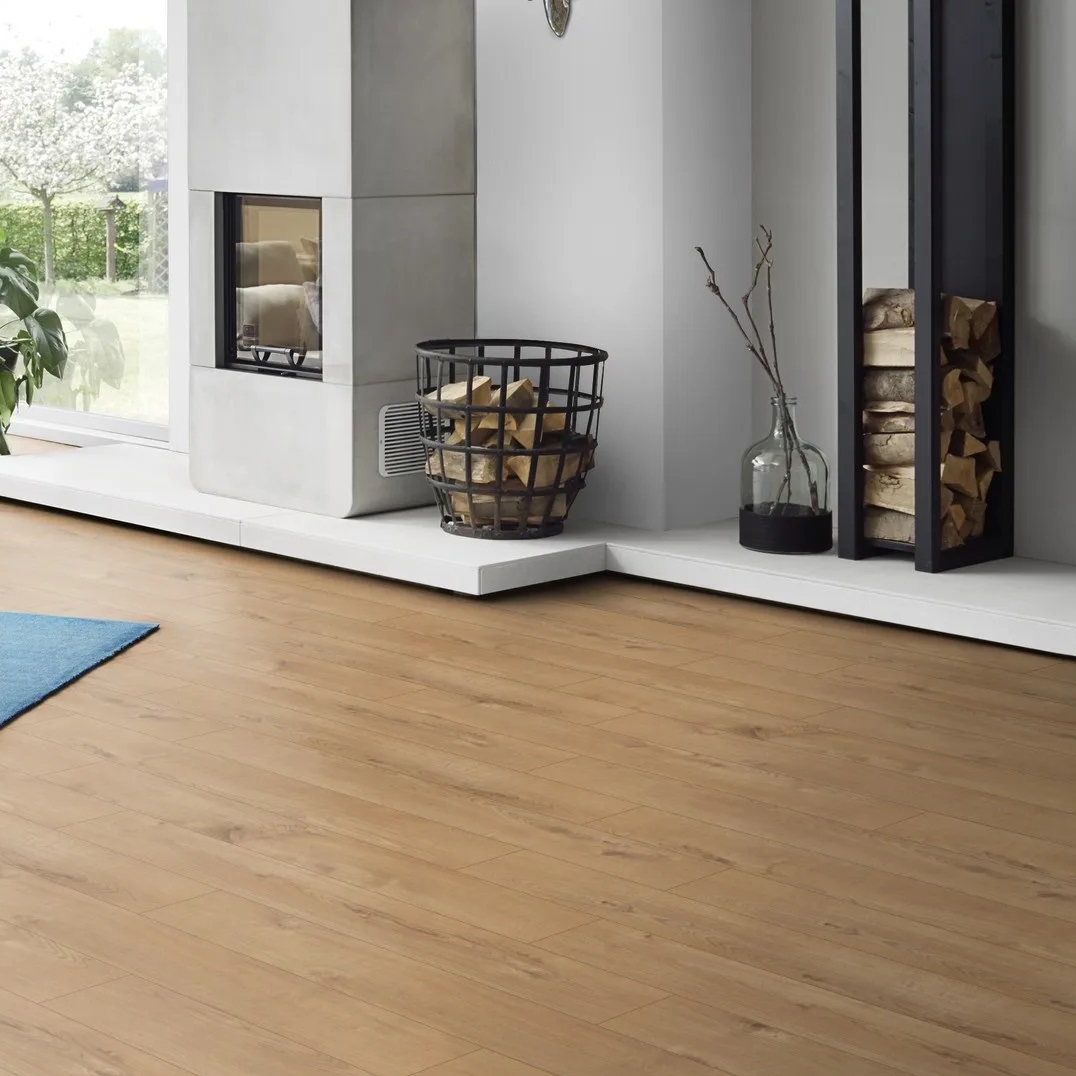 Kronospan - ламінат який можна експлуатувати як в домашніх умовах, так і в комерційних цілях. Міцність (клас) покриття для підлоги - 32, товщина 8 мм. Декори з різноманітною гамою кольорів "натуральної деревини". Ламінат стійкий до різних пошкоджень та впливу вологи - захисне покриття Aquastop. Він невибагливий у догляді та антиалергенний, що особливо важливо для приміщень у яких мешкають маленькі дітки. Монтується без використання будь-яких інструментів та клею лише за допомогою простої замкової системи (замок-заскочка).
