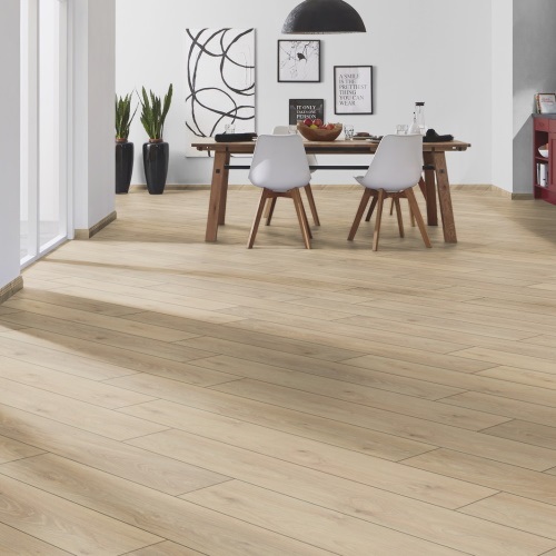 Kronospan - ламінат який можна експлуатувати як в домашніх умовах, так і в комерційних цілях. Міцність (клас) покриття для підлоги - 32, товщина 8 мм. Декори з різноманітною гамою кольорів "натуральної деревини". Ламінат стійкий до різних пошкоджень та впливу вологи - захисне покриття Aquastop. Він невибагливий у догляді та антиалергенний, що особливо важливо для приміщень у яких мешкають маленькі дітки. Монтується без використання будь-яких інструментів та клею лише за допомогою простої замкової системи (замок-заскочка).