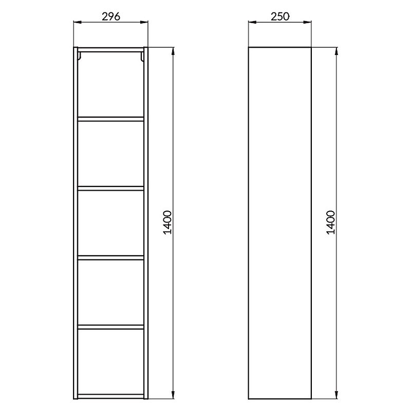 - розмір (В х Ш х Г): 1400 х 296 х 250 мм