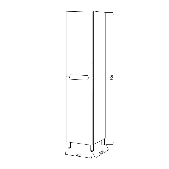 - ширина 350 мм, висота 1600 мм, глибина 291 мм