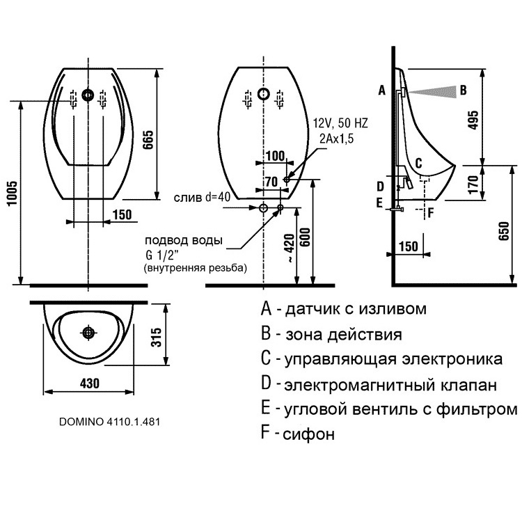 Пісуар Jika Domino, з датчиком автоматичного змивання,живлення від батарейки.