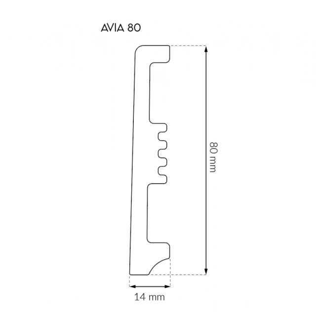 Arbiton Avia - це плінтус висотою 60 або 80 мм, який легко приклеюється до стіни. Чудово підійде до вінілового підлогового покриття, адже є водонепроникним. Ширина плінтуса в 14 мм робить його ідеальним як для вінілових підлог, так і для ламінату. Тверда поверхня лицьового боку плінтуса захищає його від пилу і бруду та полегшує догляд.