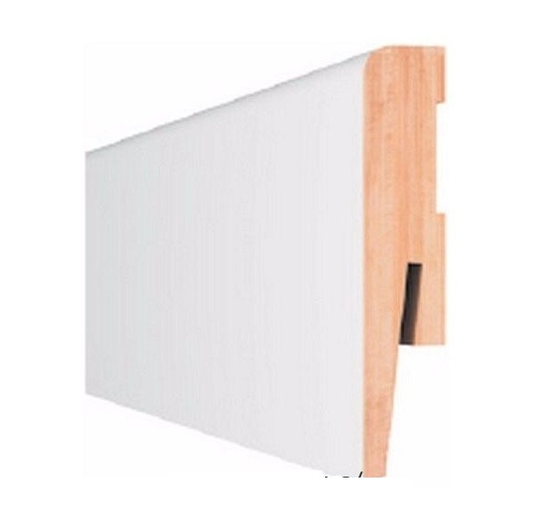 Завдяки збільшеній щільності базового матеріалу (MDF), плінтус має високу довговічність, знижену ламкість, підвищену ударостійкість і низьке водопоглинання. Цей плінтус має цілу низку переваг. Можна вибрати будь-який колір фарби і здійснити оздоблення відповідно до своїх ідей. Покривати плінтус слід акриловими, латексними або силіконовими фарбами на водній основі. Простий у монтажі та установці, кріпиться на кляймери за умови рівних стін, або на рідкі цвяхи.